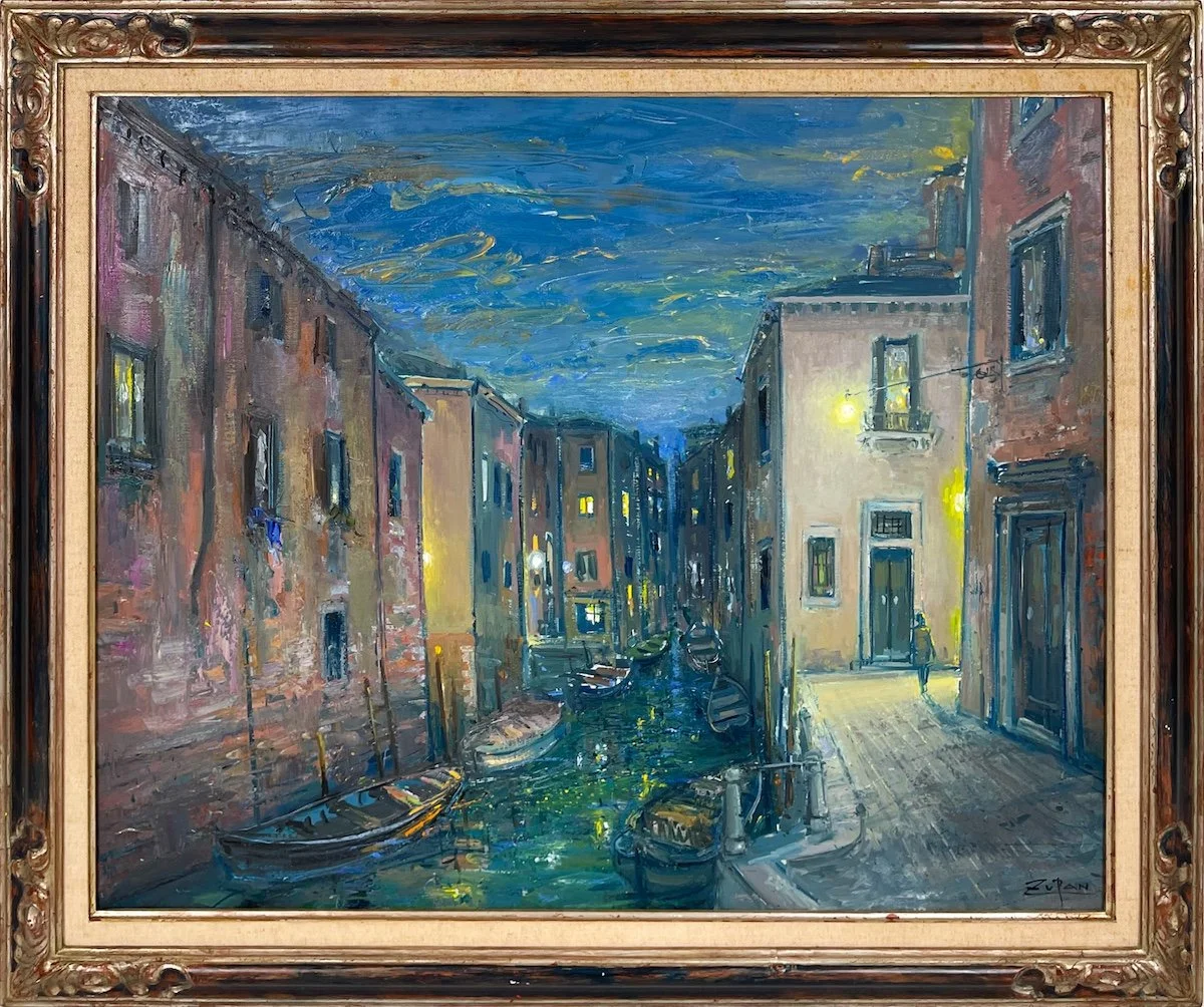 A Slovenian-born American painter, Bruno Zupan is renowned for his radiant depictions of light in landscapes and cityscapes painted en plein air. His vibrant, expressive brushwork captures the essence of places like Mallorca, Venice, and Paris, translating his emotional connection to light and nature into vivid canvases. Celebrated with over 150 solo exhibitions worldwide and numerous published graphic works, Zupan was awarded life membership in the Society of French Artists and honored with retrospectives, including at the Columbus Museum of Art. Zupan has paintings in various public collections and cultural institutions across the United States, France, Spain, and Switzerland.
