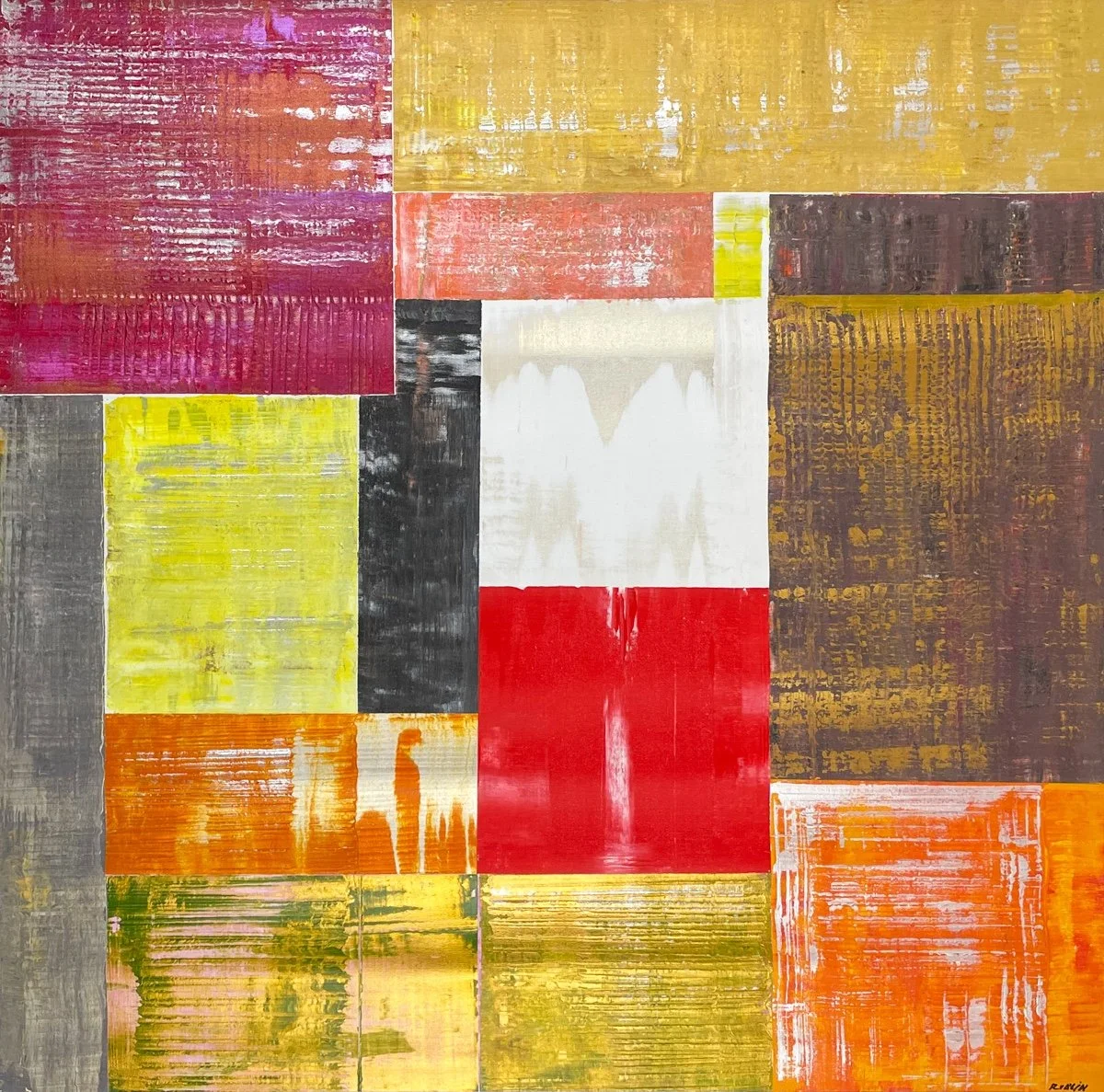 “Through a passionate interest in architecture and design, I play with colour and form. The structure, the built quality of my work, is profoundly evident. The dynamics of colour relationships and formal equipoise echo through the works”