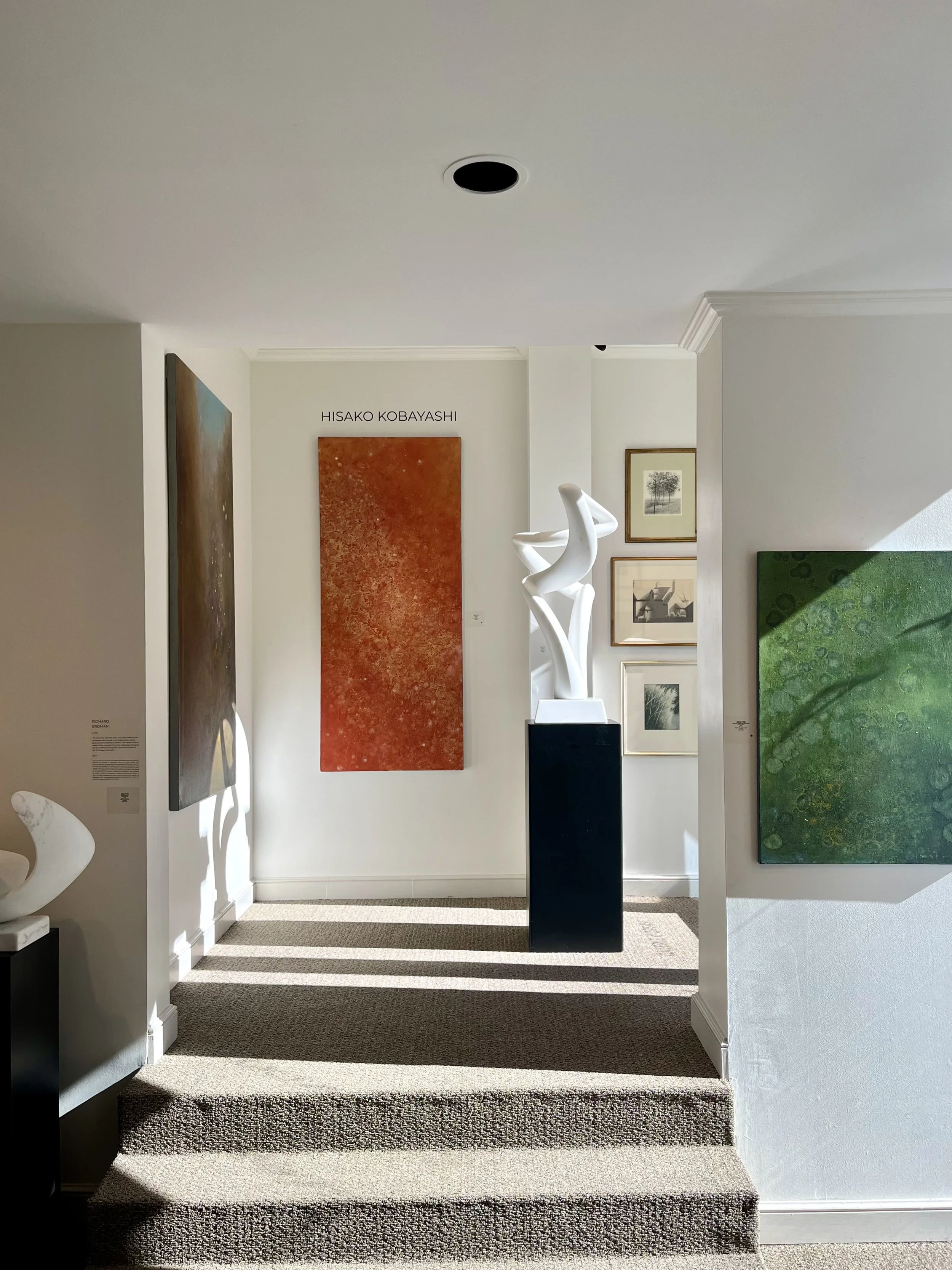 Hisako Kobayashi's paintings serve as a form of meditation for both herself and her viewers, creating a profound and lasting emotional and spiritual impact. Her work balances opposites in harmony, culminating in compositions that seem to embody the essence of air or water, pulsing with energy.
