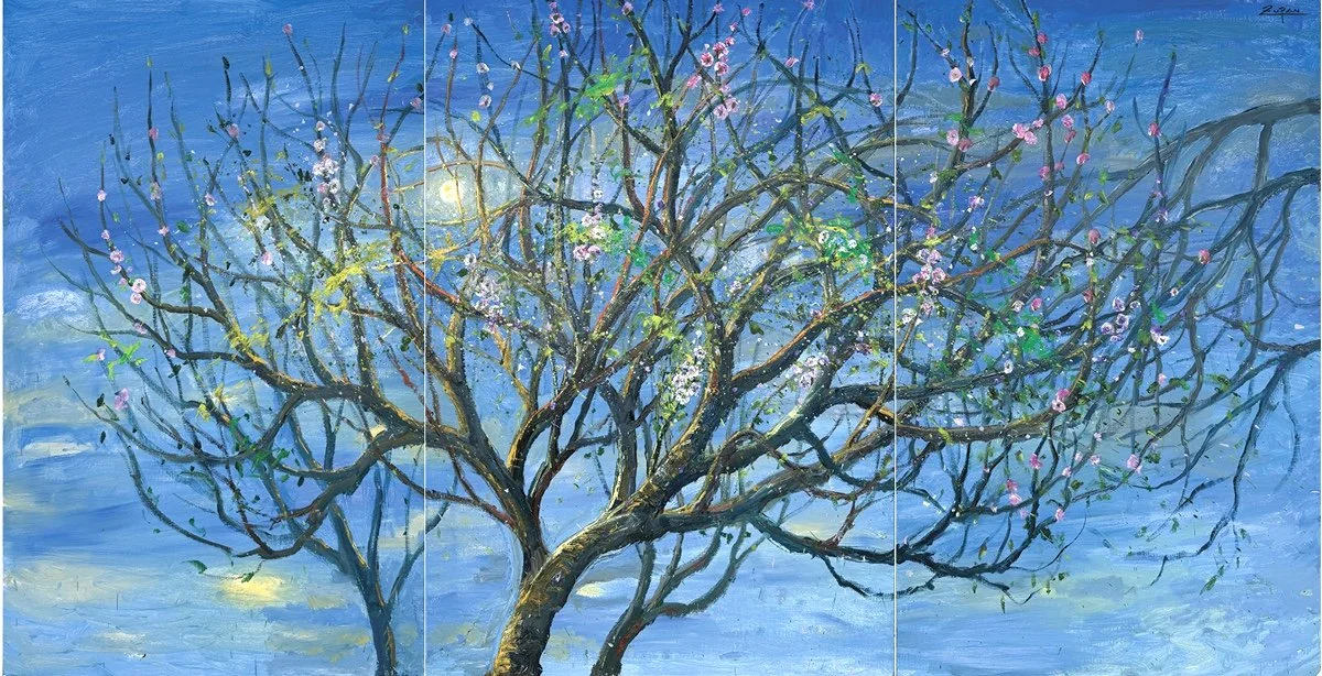 Triptych of Almond Trees in Spring